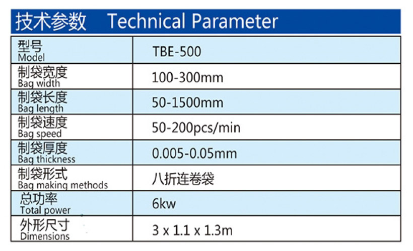 自動連卷八折連背制袋機( TBE-500)