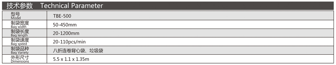 機器特性 該機電腦控制,高位停車,自動放料,是生產(chǎn)垃圾袋、八折連卷背心袋、S型袋的理想設備。